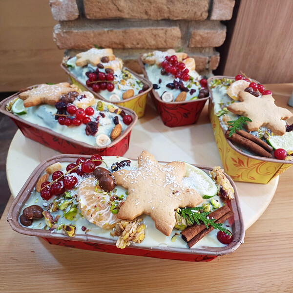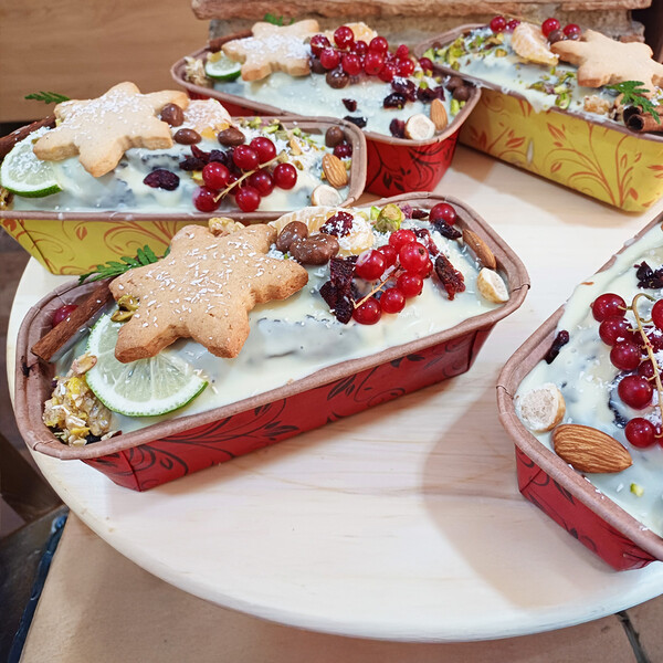 Коледен сладкиш 280 г. Коледен сладкиш шоколадов или ванилов с микс от ядки и сладко от вишни